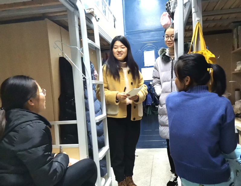 “员工党员走访新生宿舍践行初心、引领梦想”将作为我支部的一项特色项目活动,长期开展下去。通过此活动的开展,一方面帮助大一新生增强了自觉遵守校规校纪的意识,较好、较快地适应老员工活和学习;另一方面加强了员工党员与普通同学的联系,在实际行动中践行了党员的初心和使命,时刻联系群众服务群众,发挥党员的先锋模范作用。 (李霞妹)