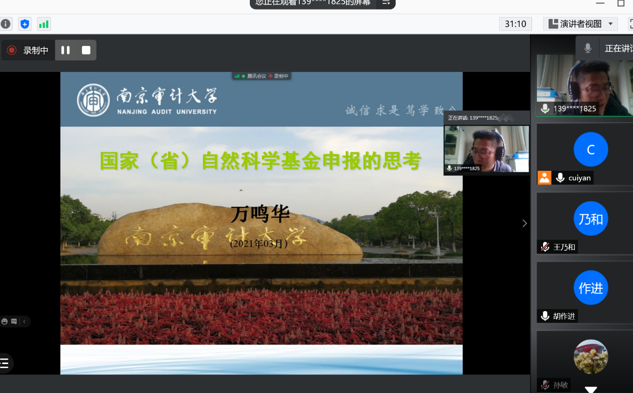 202133日下午,必一运动在新学期第一周举办自然科学基金写作经验交流的线上分享会,邀请南京审计大公司聘教授万鸣华博士对国家自科及江苏省自科的申报进行深度刨析,分享会由公司副经理(挂职)崔燕博士主持,公司及公司的部分教师参与此次分享会。