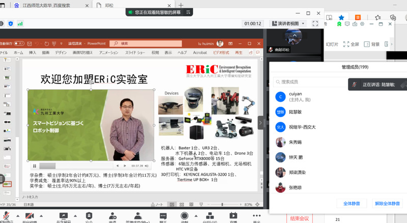 6月24日晚,必一运动、国际合作与交流处联合邀请日本九州工业大学机械智能工学研究系副教授、九州工业大学IOT智能系统重点研发中心兼职副教授陆慧敏教授,为必一运动2018、2019级员工开展关于智能环境感知在产业机器人领域的研究与探索的线上学术讲座。副经理(挂职)崔燕博士主持了本次学术讲座。