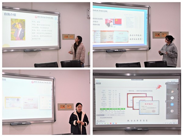 8名候选同学按照抽签顺序依次进行汇报,从个人情况、学习成绩、竞赛成果、科研项目和社会实践等方面展现个人精彩的学习生活和奋斗历程。他们苦学肯练,从学科竞赛到科研论文、专利的成果,彰显数信学子敢闯敢干的精神风貌;他们立足专业,敢为人先,从疫情期间的志愿者到助力残疾人事业发展的创新者,展现数信学子的博爱精神和社会责任感。