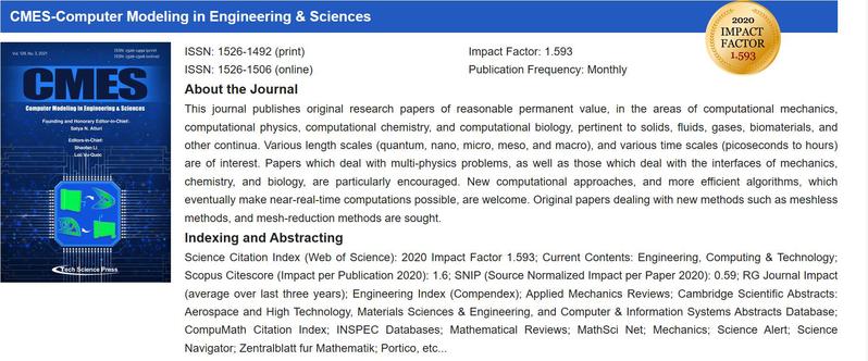 CMES-Computer Modeling in Engineering & Sciences2020年影响因子1.5930期刊SCI分区Q3。该期刊聚焦具有合理永久价值的原始研究论文,旨在向所有对计算材料、计算力学、计算物理等领域的计算机建模和模拟感兴趣的科学家、研究人员、工程师和从业人员传播最先进的科学和技术发展。
