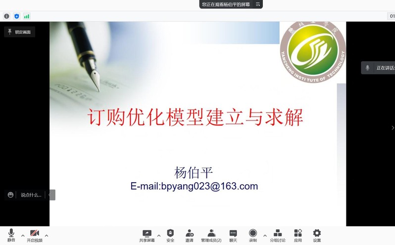2021年12月7日晚上,盐城工公司的杨伯平教授应邀为必一运动的相关老师和员工作了一场精彩的数学建模线上讲座。杨教授是数学建模竞赛培训方面的资深专家,曾带领盐城工公司的员工获得过全国老员工数学建模竞赛与美国老员工数学建模竞赛的诸多奖项。