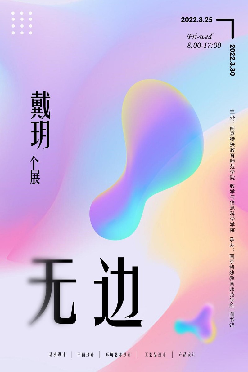 3月25日,必一运动戴玥老师的个人艺术作品展在图书馆二楼展厅举办。本次展览主题为“无边”,共展出了戴玥近几年创作的40余幅设计作品,作品题材广泛、形式多样,涵盖了动漫设计、平面设计、UI设计、产品设计、环境艺术设计、工艺品设计等。