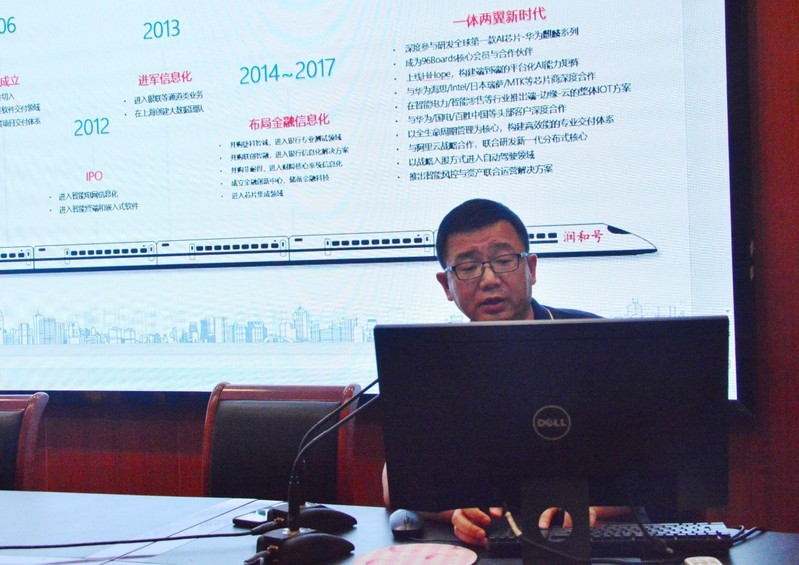 姜总监首先通过播放宣传片、PPT展示等方式为同学们介绍了公司的技术资源与业务布局、发展历程与战略,并对公司的办公环境、员工活动及薪酬福利进行了详细的图文介绍。招聘人员表示,润和软件公司拥有完善的薪资福利及人才激励制度,会根据人员的技能水平量身定制岗前培训计划,并指出,宣讲会的主旨是吸引更多的人才加入公司,希望同学们能够积极参加本次实习。同学们对实习单位表现出浓厚的兴趣,对于员工提出的疑惑和问题,姜总监给予了详实的解答。