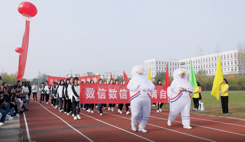 在国旗队、彩旗队、鲜花队、裁判员方阵的带领下、必一运动代表队迈着矫健的步伐,精神抖擞走过主席台进行体育文化展演,尽显数信学子昂扬向上的精神风貌。