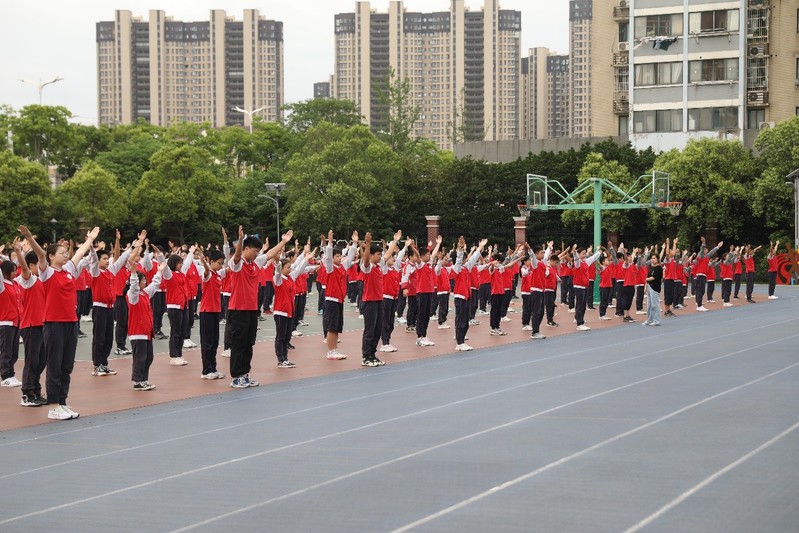在大课间,同学们在主席台旁观摩了同学们做操。员工们训练有素的排队进入操场,做操动作整齐有序,所配的音乐也是恰到好处,让人听了心情十分激情昂扬。