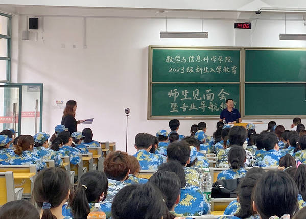 随后,数学与应用数学专业2301班宁雨菲同学作为新生代表发言,各专业负责人分专业开展了专业导航教育,分别从专业概况、专业发展、如何学好专业课、就业导向等方面为同学们进行了详细讲解。