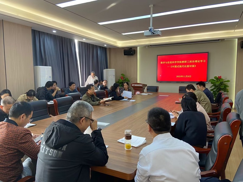 为进一步把学习贯彻习近平新时代中国特色社会主义思想和党的二十大精神引向深入,帮助广大党员干部深刻理解中国式现代化的鲜明特色和丰富内涵,更好把握强国建设、民族复兴的目标和实践要求,11月8日下午,数学与信息科学公司党总支对《中国式现代化面对面》一书进行了专题学习,全体教职员工也一同参加了此次学习会。
