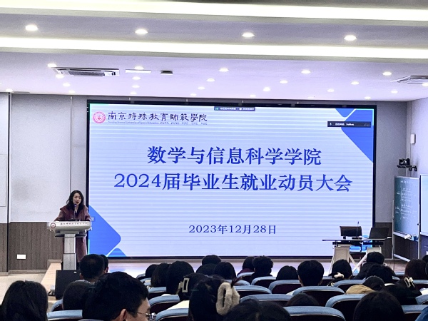 党总支副书记丁雯首先对2023届毕业生就业工作做了简单的总结,通过就业数据的分析,让学们认清当前就业的形势。她强调,同学们要认识到自身的真正需求和定位,积极寻找就业岗位,找到适合自己的择业方向与目标。同时,勉励大家在即将开启人生新阶段中要克服消极焦虑和胆怯盲目,认清就业形势,转变观念思路,把握机遇机会;鼓励毕业生积极配合、跟紧节奏,早谋划、早安排、早着手、早行动,重视就业选择,顺利走向人生新阶段。