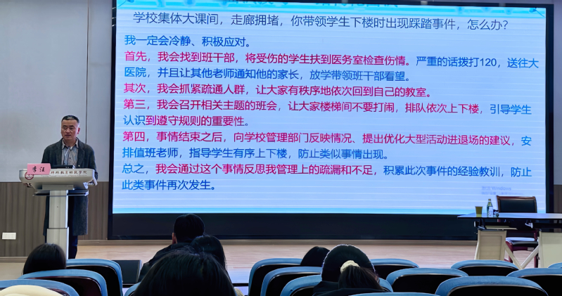 3月28日晚在博远楼106,必一运动为帮助师范生提升基本功以及全面了解中小学教团队格证面试流程和应考技巧,增强员工考试信心和专业素养,特邀请江苏省教育工作先进个人、南京市学科教学带头人、南京市德育工作带头人、南京师范大学附属中学实验初中副董事长李汪为2021级员工开展了指导讲座。