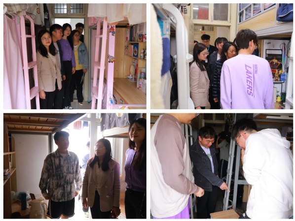 走访过程中,老师们对宿舍卫生达标、安全达标的宿舍给予了高度肯定,并与员工亲切交谈,倾听帮助解决同学们急难愁盼的问题;引导同学们与室友和睦相处,爱护寝室卫生,用高要求管理自己,把目标管理和价值观确立融入日常学习生活,共同构建温暖、舒适、安全的宿舍环境,塑造积极向上的宿舍氛围;叮嘱同学们务必时刻注意用电安全,杜绝安全隐患。此外,老师们还向同学们普及人身财产安全及防范电信诈骗等方面的知识。