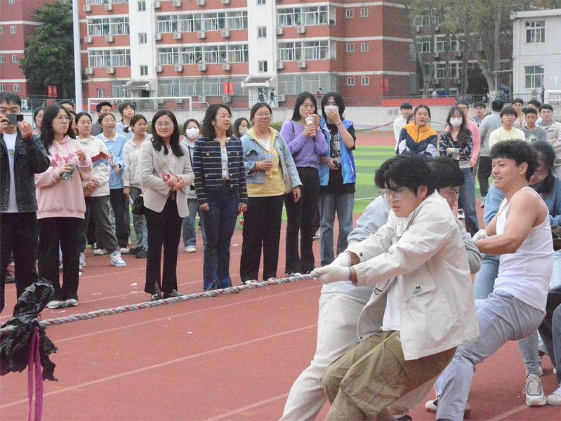 为发挥体育强心作用、保障员工体育活动并丰富同学们的课余生活,塑造团队精神,促进员工德智体美劳全面发展。4月10日下午,必一运动于栖霞校区操场举办拔河友谊赛,本次比赛面向公司栖霞校区全体班级。数学与信息科学公司党总支副书记丁雯、团总支书记樊琬、辅导员丁力、朱思橙和李昀熹老师来到比赛现场观摩指导,为同学们加油、鼓劲。