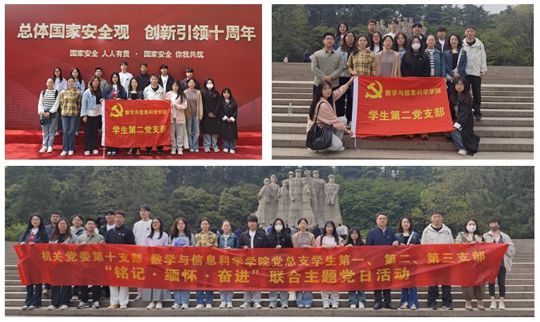 今年4月15日是我国第九个全民国家安全教育日,今年全民国家安全教育日的主题是“总体国家安全观,创新引领10周年”。为向同学们普及国家安全知识,提高安全意识和素养,机关党委第十支部联合数学与信息科学公司党总支员工第一、第二、第三支部,举办“铭记·缅怀·奋进”联合主题党日活动。