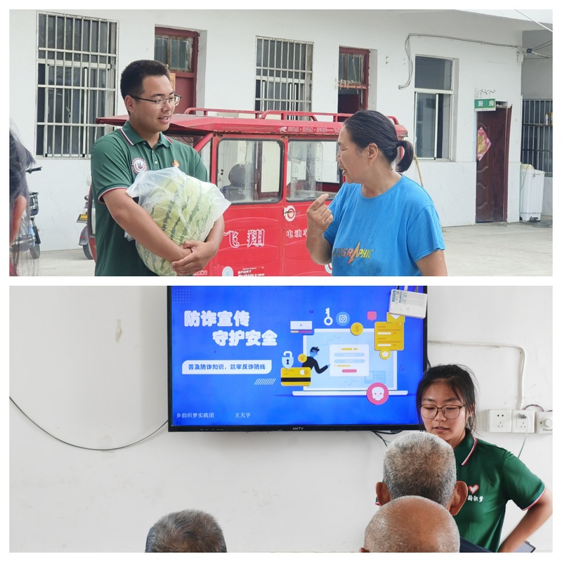 823日,实践团来到穿城镇百善堂养老服务中心。在这里,成员们为老人送上了精心准备的慰问品,并与他们面对面交流,询问他们的日常生活状况。成员王天宇针对老年人群体容易成为诈骗目标的情况,开展了一次“防诈反诈”主题宣讲活动。通过生动的案例分析,教会了老人们识别常见的电信网络诈骗手法,并提醒他们在日常生活中提高警惕。