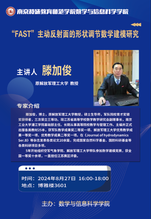 讲座信息:“FAST”主动反射面形状调节的数学建模研究