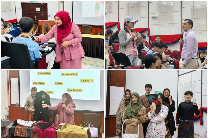 玛拉工艺大学为研学团师生们安排了丰富多彩的课程体验与文化交流活动。Nurul Liya Saffura Rostam教授向同学们介绍了马来西亚的传统语言、文化、习俗等,并邀请同学们试穿当地传统服饰,在轻松欢快的课堂氛围中,同学们亲身感受了马来西亚独特的风土人情和校园文化,体会到了多元文化的碰撞与融合之美;Shazan Khan Omar教授以计算机网络和人工智能为主题,带领同学们在人工智能软件的辅助下进行分组主题研讨,课堂中老师们着重强调了在线沟通、数字团队合作以及文件存储等现代学习技能的重要性,为员工们的未来学习与发展提供了宝贵的建议。研学团的同学们在沉浸式全英文的授课形式下获得了提升语言能力的机会,深刻领略了多语言多文化下的合作与沟通。