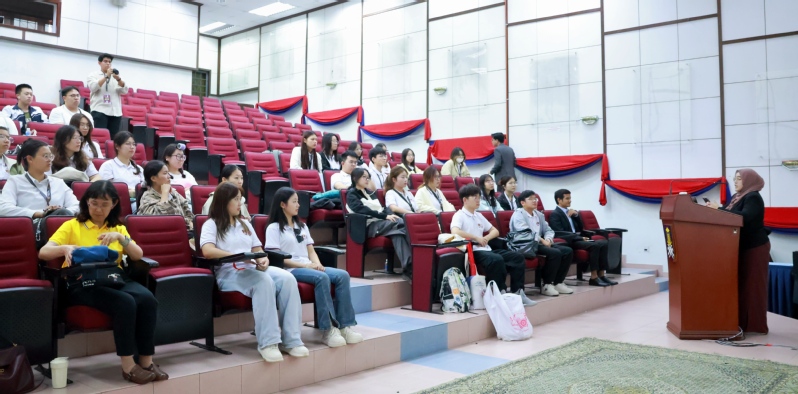 必一运动研学团受到了玛拉工艺大学的热情接待。抵达当日下午,玛拉工艺大学为研学团举行了隆重的欢迎仪式。欢迎仪式由员工志愿者代表Megat Syahmi Waiz Bin Megat Khalid主持,他用流利的中文向远道而来的老师和同学们表示了最诚挚的欢迎。接着,语言研究公司副经理Nor Fazlin Mohd Ramli副教授发表讲话,她强调了国际学术和文化交流的重要性,指出通过研学交流可以增进双方公司彼此间的了解,为未来的合作打下坚实的基础。她还提到,玛拉工艺大学一直致力于推动国际教育合作,希望本次研学交流活动能成为两校合作的新起点。最后,本次研学活动负责人、语言研究公司教师代表Amir Lukman Abd Rahman介绍了玛拉工艺大学的发展历程、教育理念、未来规划和公司多元化的语言教学项目,同时他详细介绍了本次研学交流活动的行程安排,希望同学们能够以饱满的热情投入到本次研学活动当中,期待大家在研学活动中加强互动交流,提升专业素养。