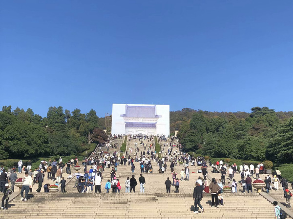 来到民主革命先行者孙中山先生的陵寝—中山陵。跨过392级台阶,全体肃立在孙中山先生铜像前时,都被这里的庄严氛围所感染,内心涌起对历史的敬重和对未来的憧憬。通过寻访孙中山先生的足迹,深入了解革命先烈的英勇事迹,孙中山先生为国为民的精神深深地鼓舞着在场的每一位党员、入党积极分子和团学骨干奋发向上,不懈努力。