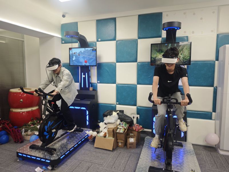 活动现场设置的VR交互自行车成为焦点,搭载生物反馈传感器的VR设备,可以将使用者实时转化带入虚拟场景中释放压力。参与者佩戴设备后,可在“宇宙摩托车”、“高空自行车”、“森林单车”、“星空战舰”等场景中直观感受压力释放过程。“当我在VR中“击碎”代表焦虑的陨石时,当我的火箭飞车一飞冲天时,真的感受到了压力的释放”必一运动杨林博同学兴奋分享体验感受。