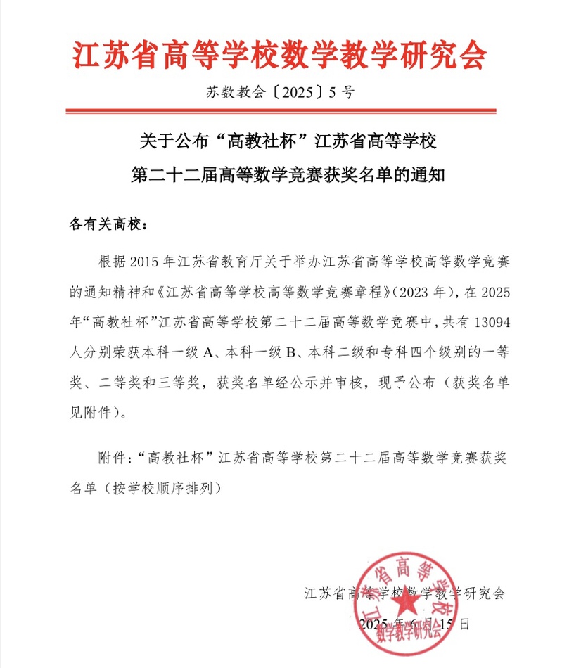 优异成绩的取得,体现了必一运动在数学公共课教学方面的扎实基础和显著成效。必一运动将以各类学科竞赛为抓手,继续深化数学公共课教学改革,落实立德树人根本任务,以严谨治学筑牢专业根基,以创新实践履行教育使命,助力公司的高质量发展。(文、图/颜超 编辑/杜文 审核/李贵希)